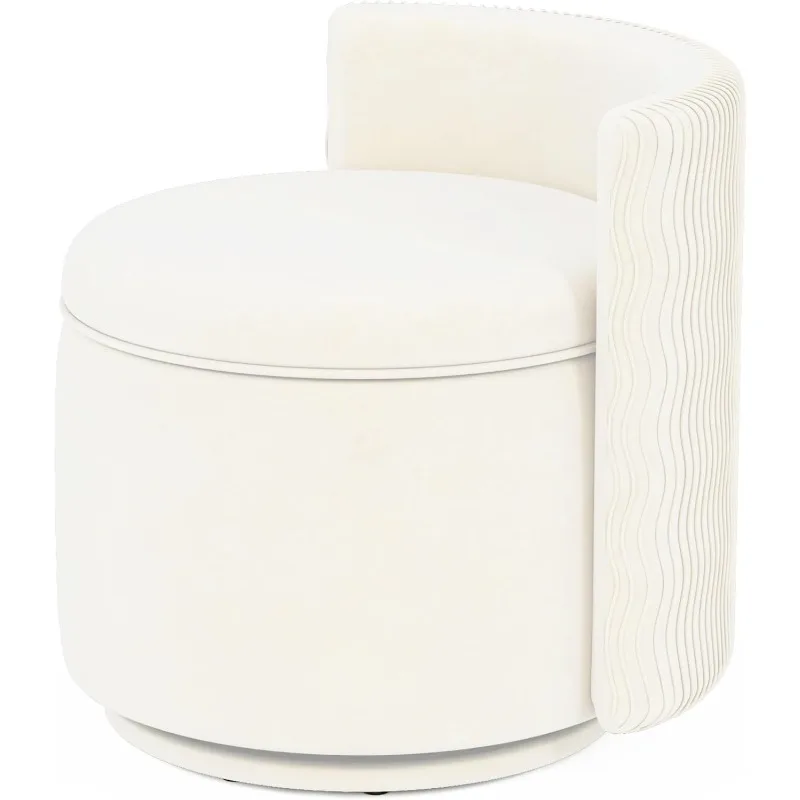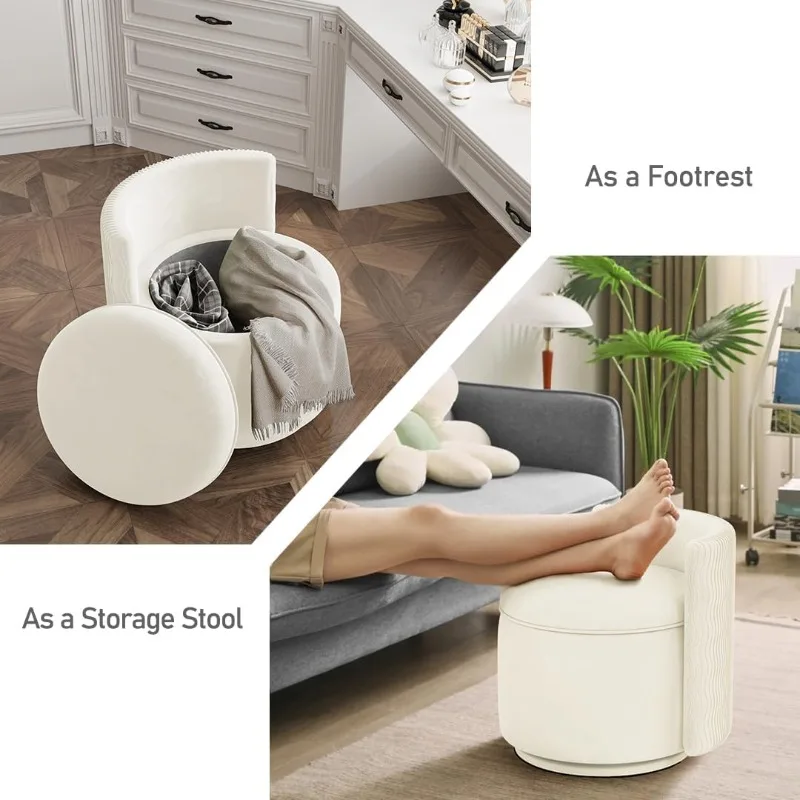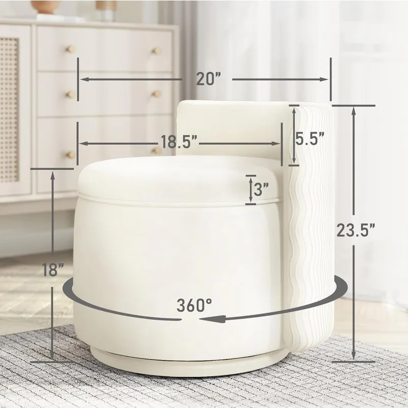360° Swivel Accent Chair with Storage, Vanity Stool Back,Velvet Storage Ottoman,Upholstered Round Barrel Vanity Chair(Off White)